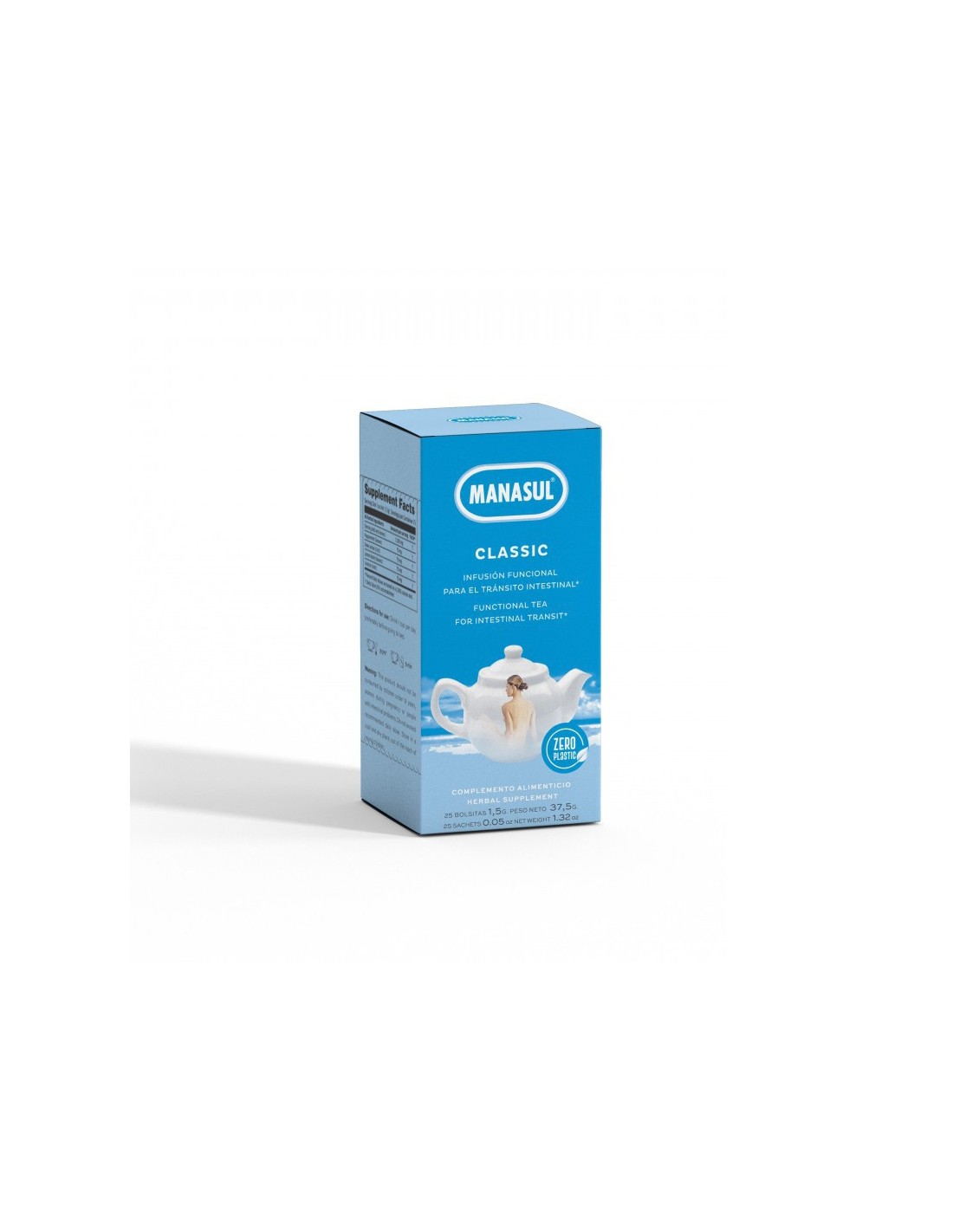 Manasul Classic es un producto natural que ayuda a regular el tránsito intestinal y promueve la salud digestiva. Está compuesto por 25 filtros de 1,5 gramos cada uno, lo que garantiza una dosis adecuada para obtener los beneficios deseados.