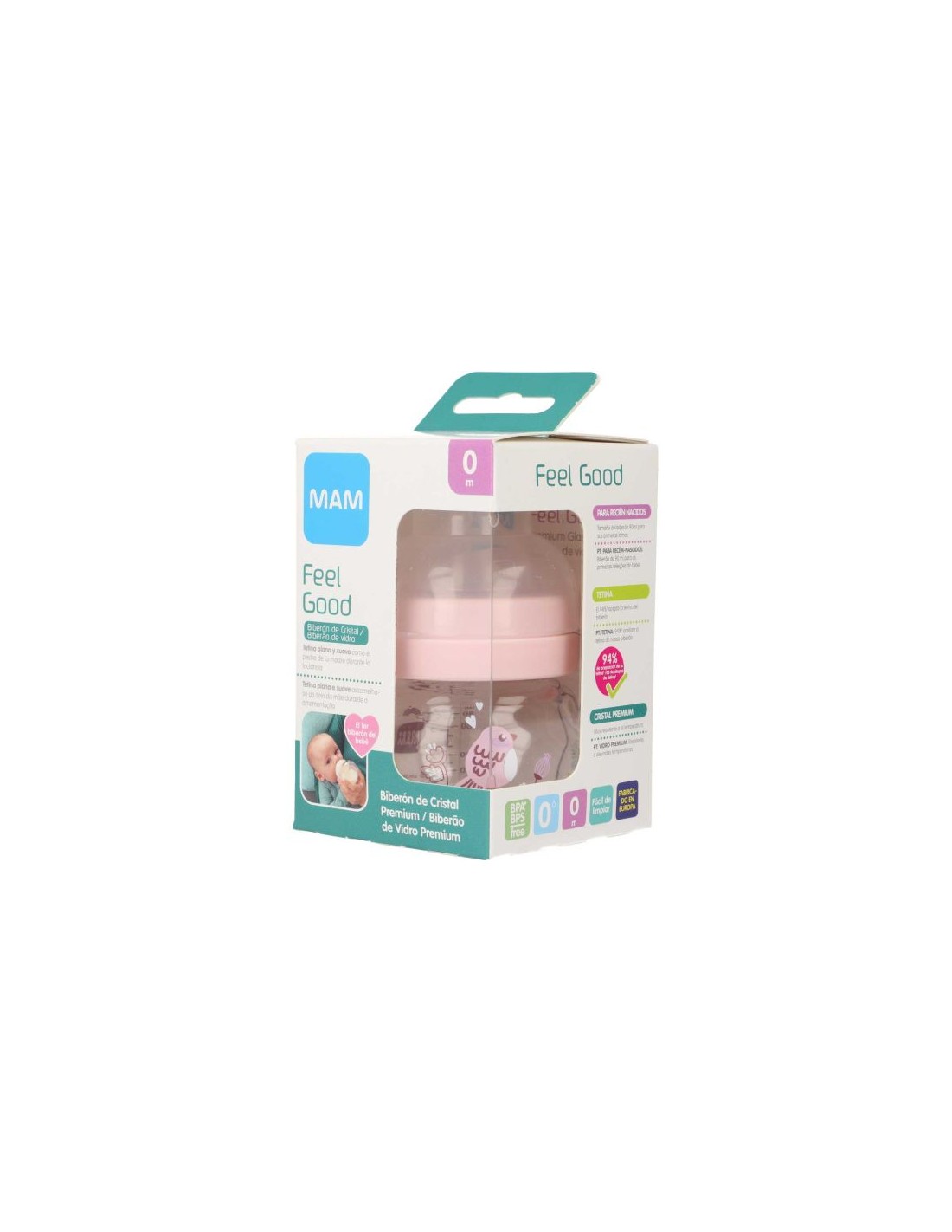 BIBERON CRISTAL MAM FEEL GOOD + 0 MESES 1 UNIDAD MATT-R 90 ML