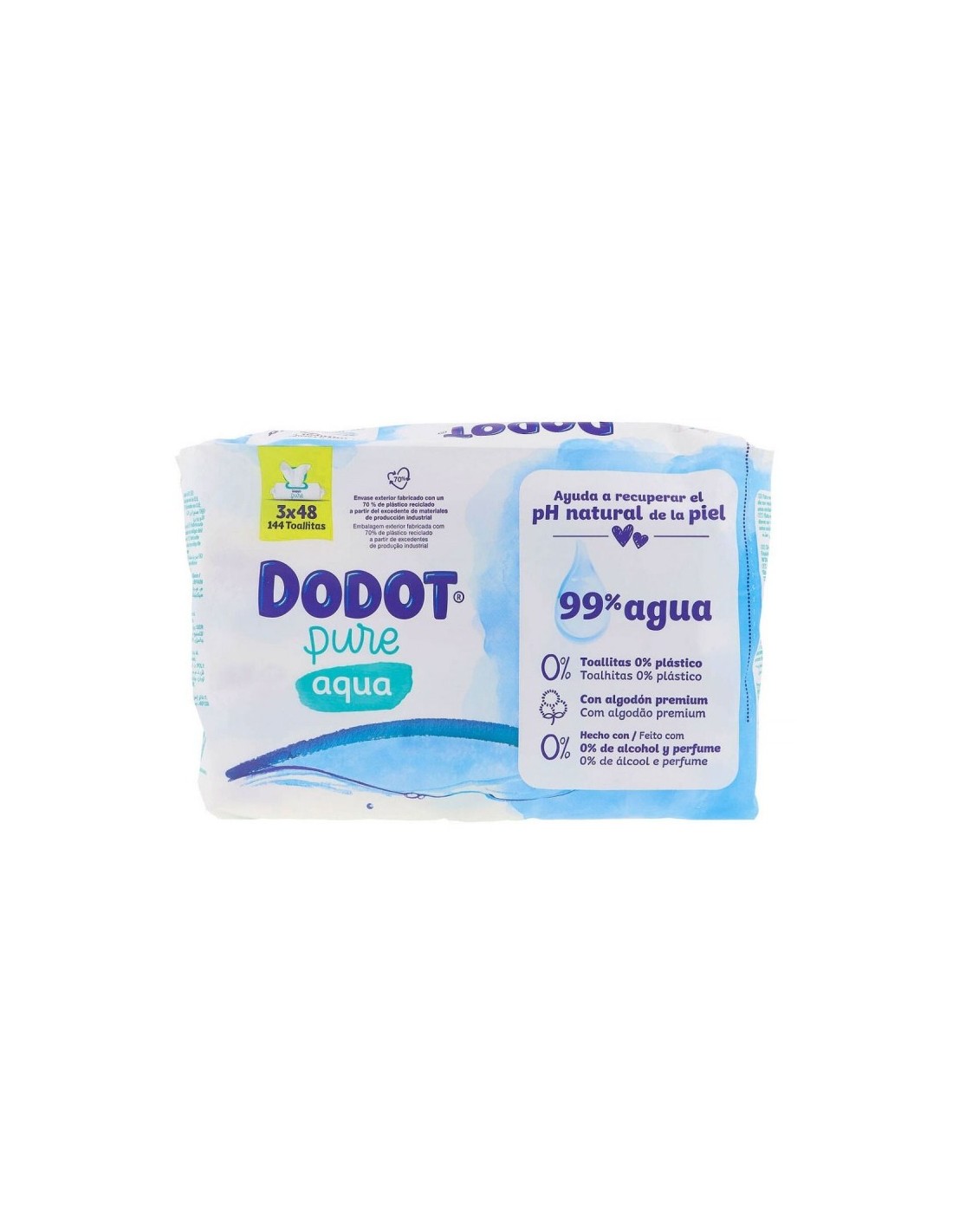 DODOT AQUA PURE TOALLITAS HUMEDAS PARA BEBES 3 ENVASES 48 UNIDADES PLASTIC FREE PACK PROMOCIONAL