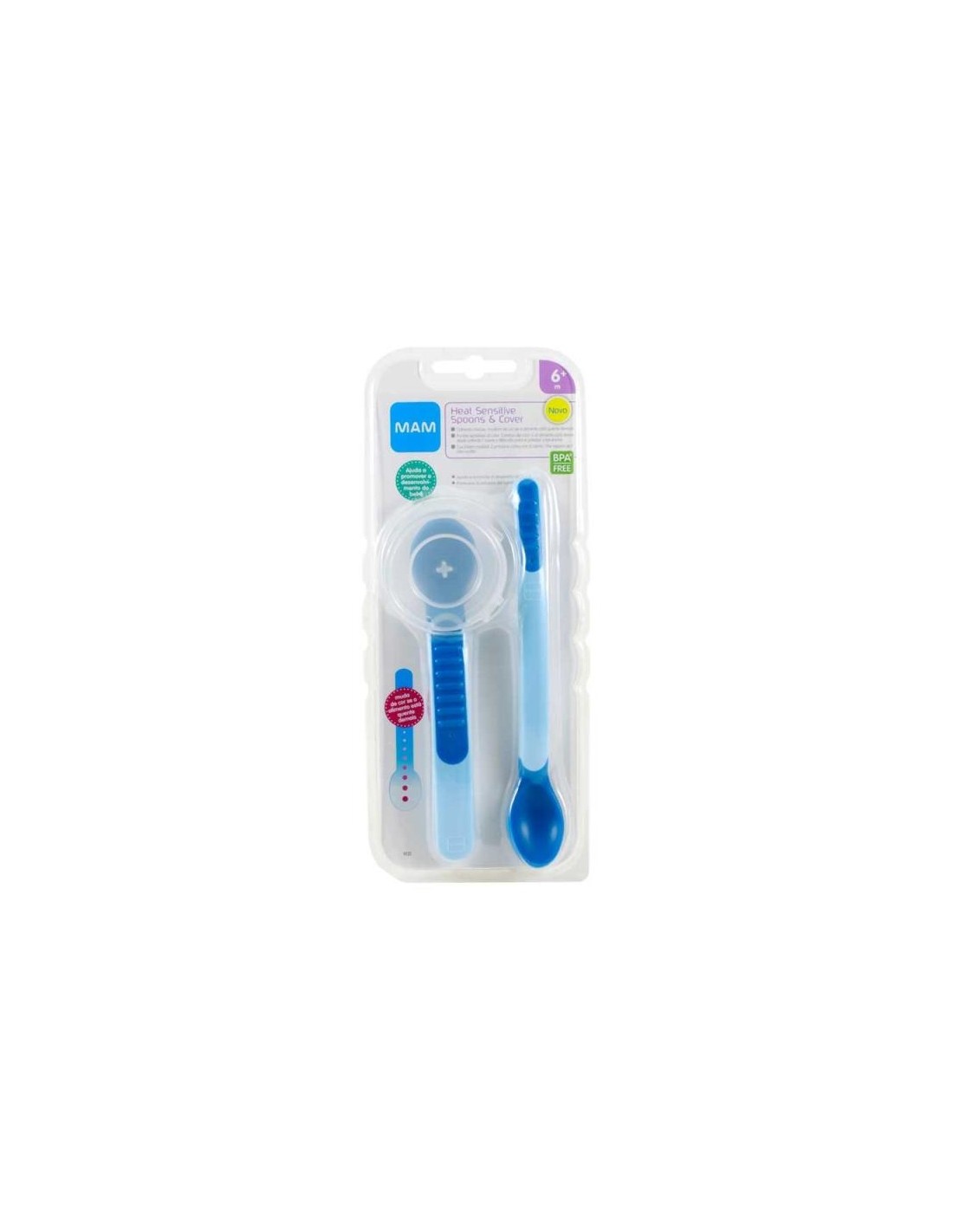 CUCHARA CON PUNTAS SENSIBLES AL CALOR MAM HEAT SENSITIVE SPOON & COVER 2 UNIDADES COLOR AZUL
