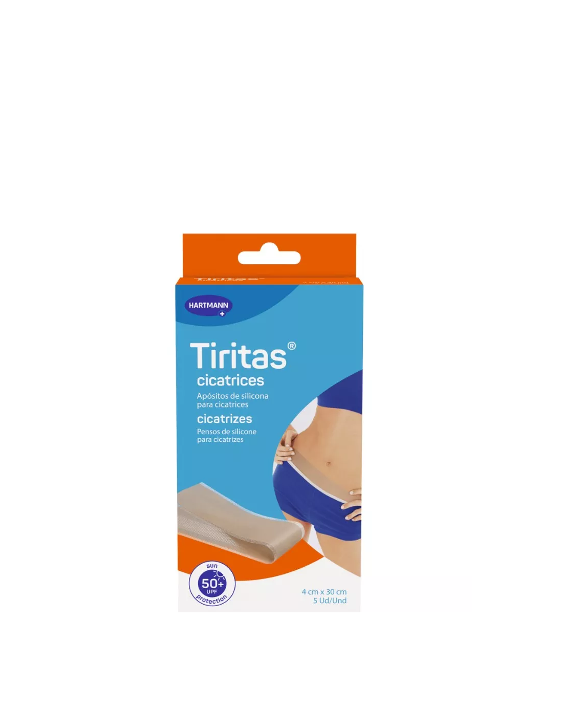 Los apósitos adhesivos de silicona para cicatrices Tiritas están diseñados para mejorar el aspecto de cicatrices hipertróficas y queloides, tanto recientes como antiguas. Gracias a la tecnología de silicona médica, ayudan a suavizar, aplanar y reducir el enrojecimiento de la cicatriz, favoreciendo una mejor apariencia estética y aportando confort. Cada apósito mide 30 cm x 4 cm, ideal para cicatrices largas (por ejemplo, tras intervenciones quirúrgicas), y el envase contiene 5 unidades.