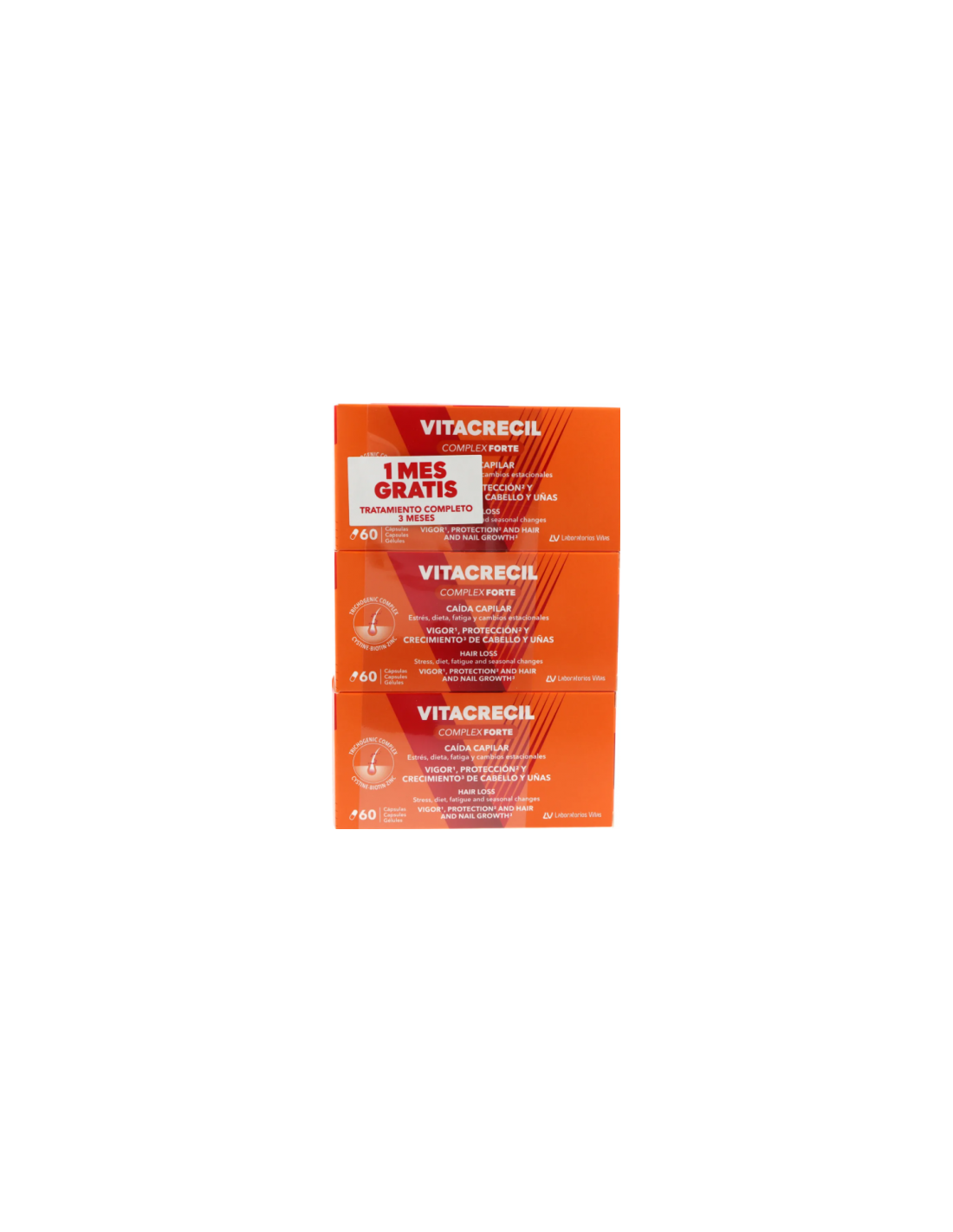 Vitacrecil Complex Forte es un suplemento alimenticio en forma de cápsulas que está diseñado para fortalecer y mejorar la salud del cabello y las uñas. Está formulado con una combinación de vitaminas, minerales y aminoácidos esenciales que ayudan a promover el crecimiento y la regeneración de los tejidos capilares y de las uñas.