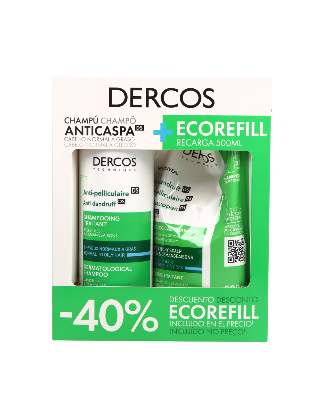DUPLO DERCOS CHAMPU CASPA GRASA 390 ML + REFILL 500 ML AL 40%