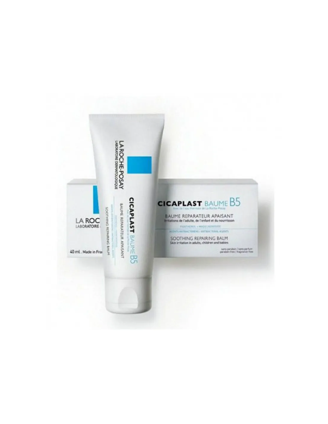 El CICAPLAST BAUME B5+ en formato de 40 ml es un bálsamo multiusos y protector de la marca La Roche-Posay que calma, protege y acelera la reparación de la piel irritada o fragilizada, aplicándose en rostro, cuerpo y labios para diversas afecciones como sequedad, rojeces, grietas o después de procedimientos como láser, tatuajes o peelings.