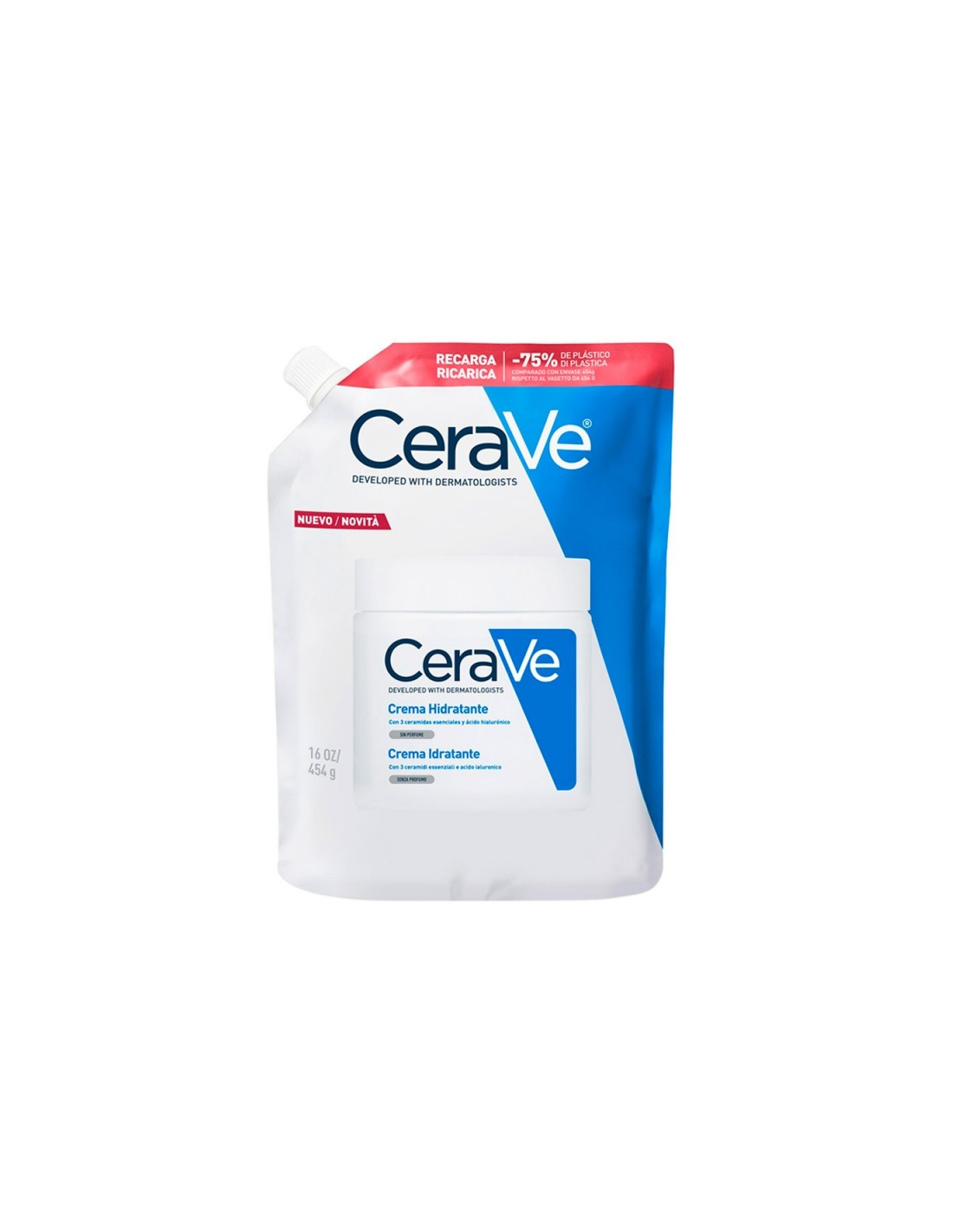 La CeraVe Crema Hidratante es un tratamiento corporal y facial diseñado para hidratar en profundidad y restaurar la barrera protectora de la piel. Su fórmula contiene ceramidas esenciales y ácido hialurónico, que ayudan a mantener la hidratación durante todo el día. El formato recarga de 473 ml permite rellenar el envase original, favoreciendo la sostenibilidad y reduciendo residuos.