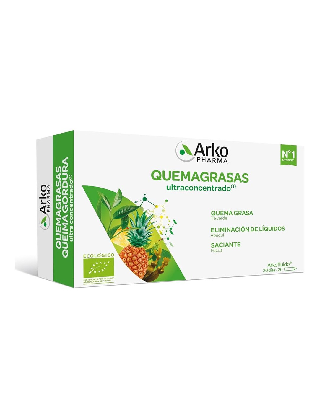 Arkofluido Quemagrasa es un suplemento alimenticio en forma de ampollas que ayuda a quemar grasas y a controlar el peso de manera natural. Está formulado con ingredientes naturales que actúan de forma sinérgica para estimular el metabolismo y favorecer la eliminación de grasas acumuladas en el organismo.