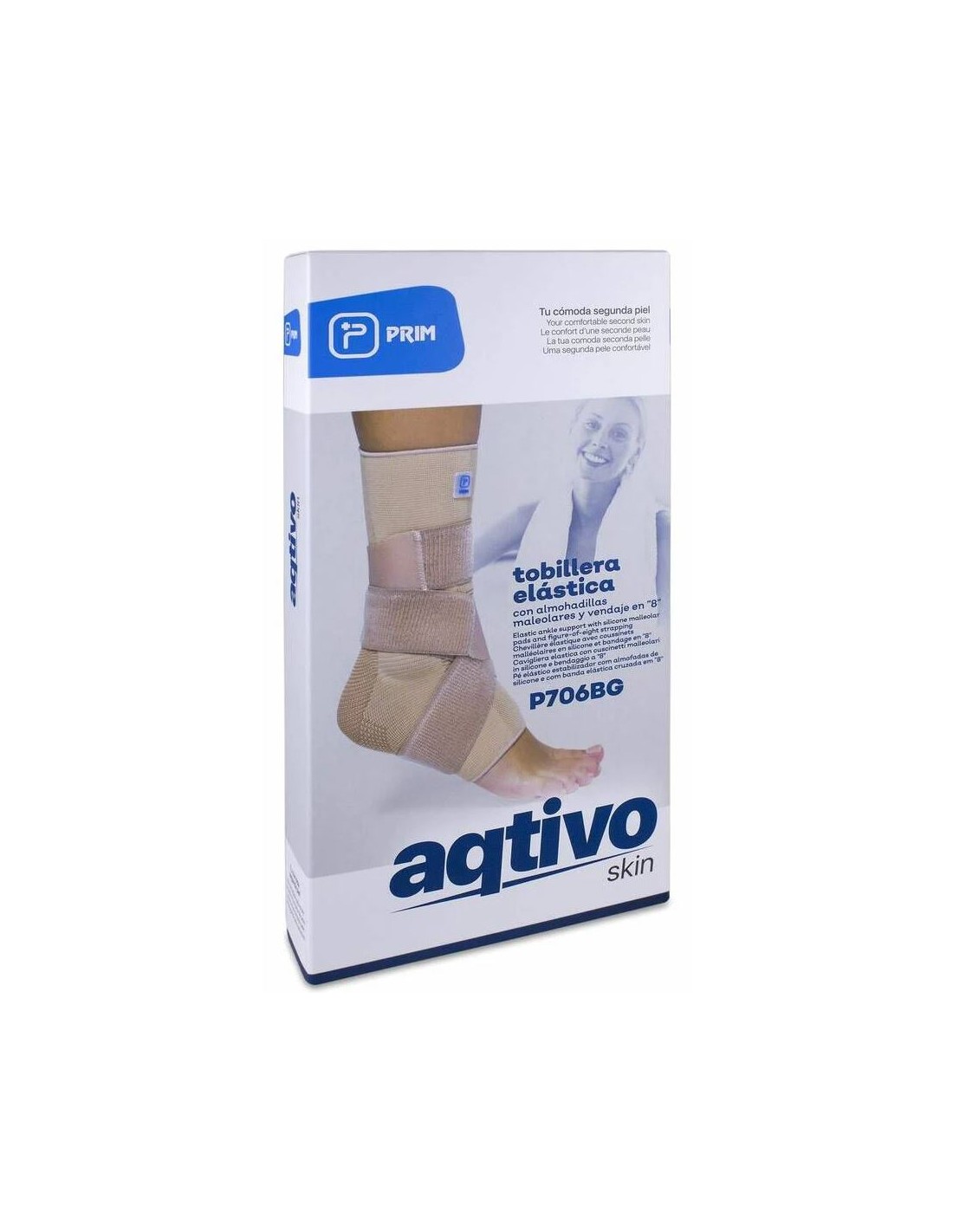 TOBILLERA ELASTICA PRIM AQTIVO SKIN CON ALMOHADILLAS MALEOLARES SILICONA Y VENDAJE EN 8 1 UNIDAD
