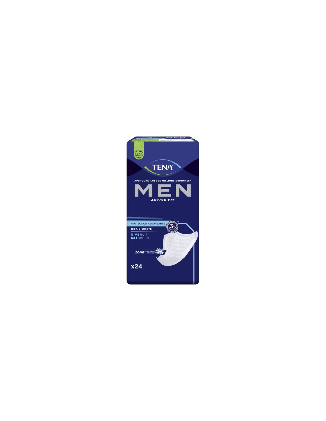 El protector Tena Men Level 1 tiene una forma anatómica, con el extremo más ancho destinado a la parte frontal de la ropa interior. Para usarlo correctamente, simplemente retire la tira adhesiva en la parte posterior y colóquelo en su ropa interior con el extremo más ancho hacia adelante.