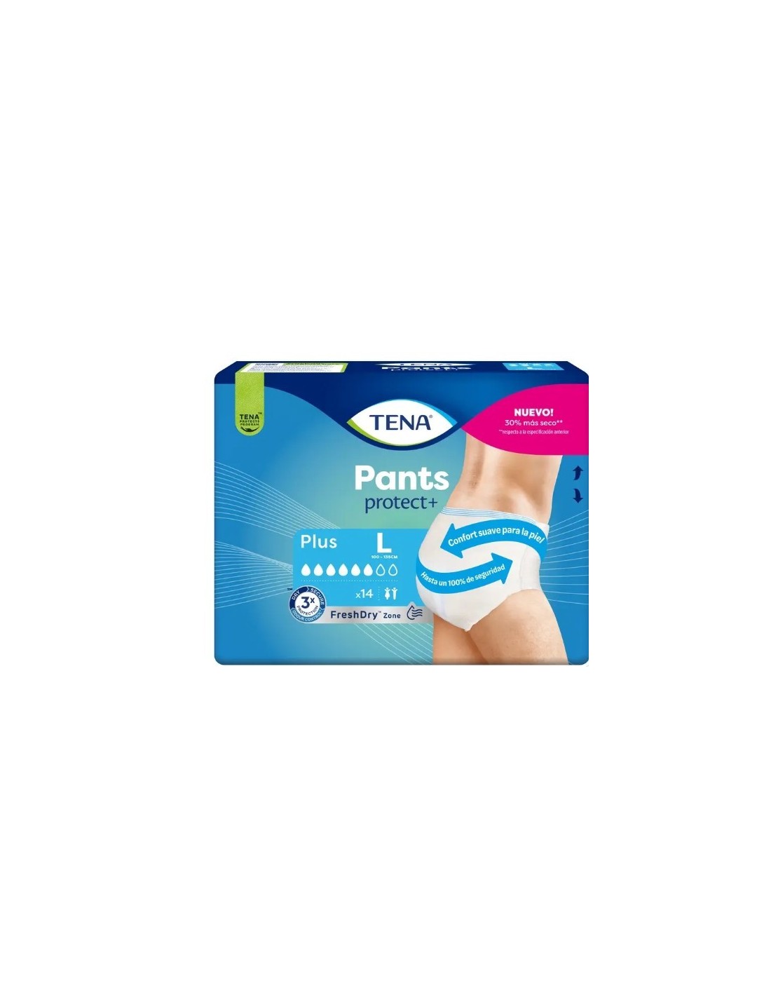 Tena Pants Plus es la braga para la incontinencia en personas voluminosas que sufren pérdidas moderadas. Puede ser usada de manera indistinta tanto por hombres como por mujeres, pues su diseño es anatómicamente adaptable a las diferentes formas del cuerpo y muy cómoda de usar durante la noche
