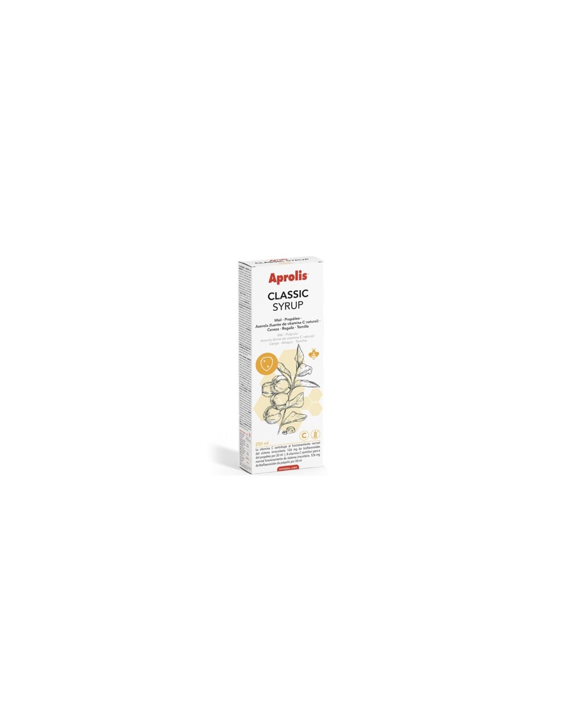 Aprolis Classic Syrup es un jarabe (250 ml) el cual contiene 360 mg de extracto de propóleo al 70%, que aporta 126 mg de bioflavonoides por dosis de 30 ml, con propóleo, vitamina C natural (acerola), cereza salvaje, tomillo y regaliz.