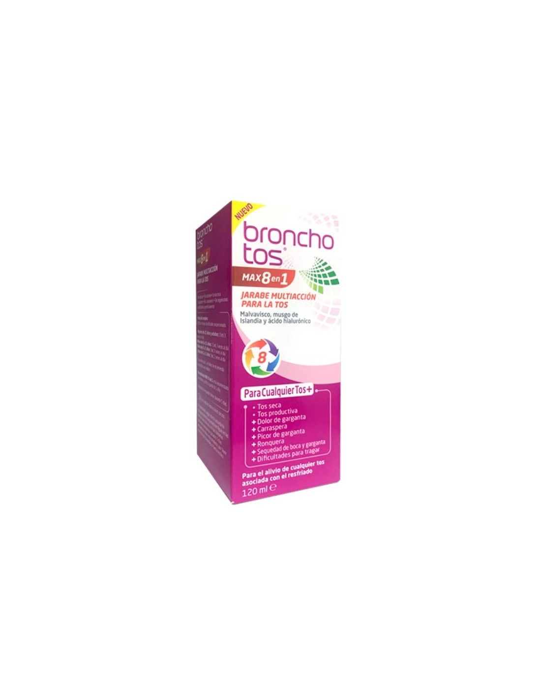 Bronchotos MAX 8 en 1 es un jarabe de fórmula multiacción diseñado para el alivio de todo tipo de tos asociada a los resfriados comunes. Con ingredientes naturales como Malvavisco, Musgo de Islandia y Ácido Hialurónico, este jarabe proporciona un alivio rápido y eficaz. Está formulado para calmar tanto la tos seca como la productiva, protegiendo la mucosa de la garganta y favoreciendo el bienestar respiratorio. Es un remedio ideal para quienes buscan una solución completa para combatir los síntomas del resfriado y mantener la garganta hidratada y protegida.