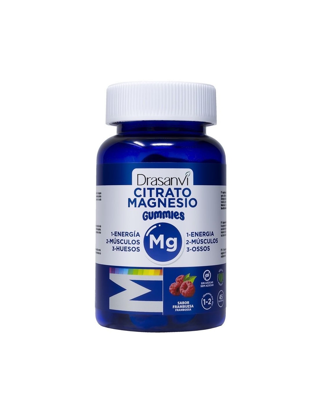 Drasanvi Mineral Citrato de Magnesio 45 Gummies Sabor Frambuesa es un complemento alimenticio en forma de gomitas con sabor a frambuesa, que aporta una fuente de magnesio en forma de citrato.