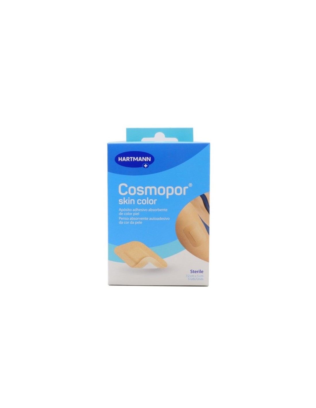 El Cosmopor Skin Color es un apósito estéril autoadhesivo diseñado para cubrir y proteger heridas quirúrgicas o lesiones superficiales. Su compresa central absorbente mantiene la herida limpia y seca, mientras que el adhesivo hipoalergénico asegura una fijación suave y segura. El acabado en color piel lo hace más discreto y estético. El envase contiene 5 unidades en tamaño 7,2 x 5 cm, ideal para heridas pequeñas o medianas.